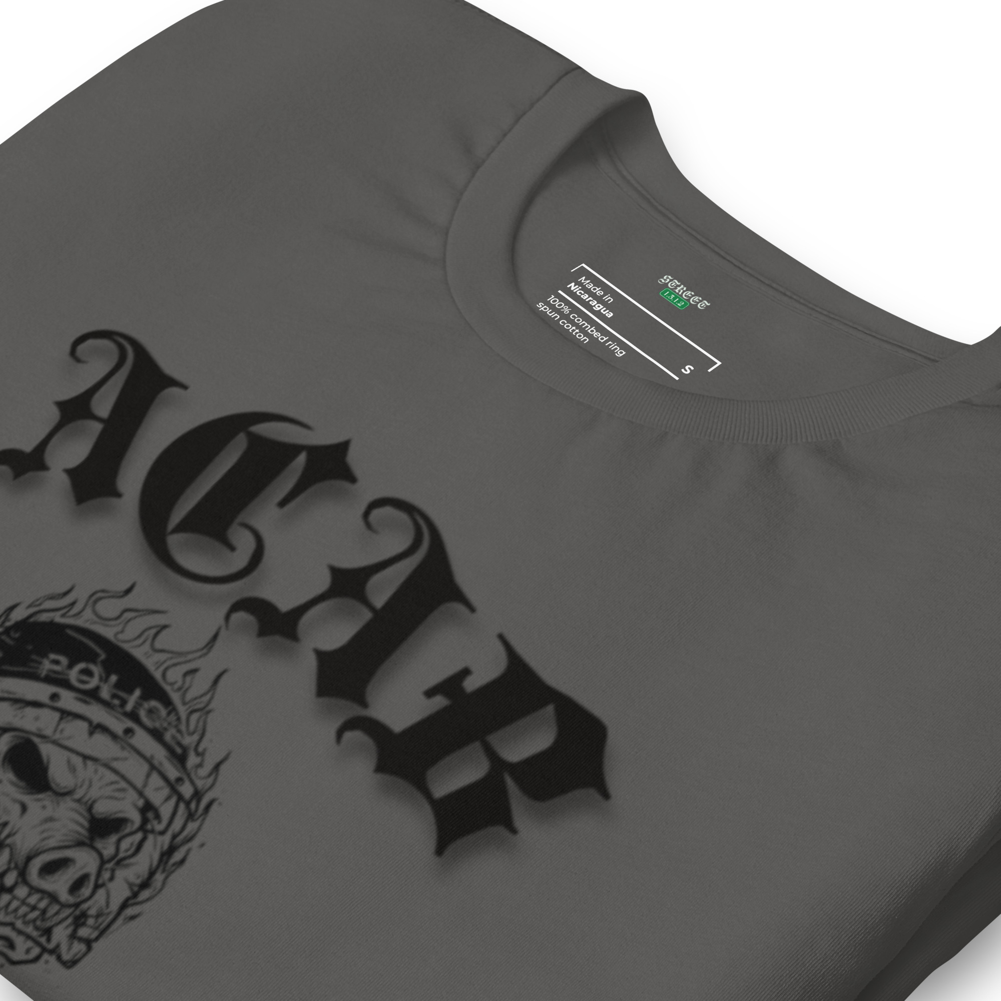 Una calavera marcada por la batalla, con casco y envuelta en fuego, simboliza a los que nunca se rinden. A los que siguen firmes cuando todo arde.